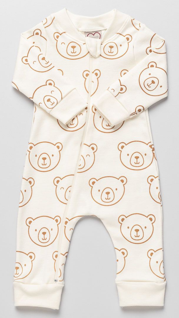 Com zíper frontal e proteção interna para não ter contato com a pele do bebê.