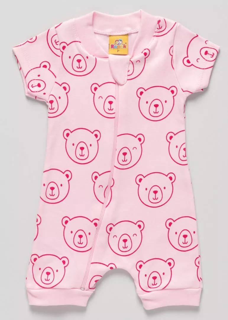 Macacão Bebê Verão Suedine, material super macio e fresquinho proporcionando muito conforto para seu bebê. Com zíper frontal e proteção interna para não ter contato com o zíper na pele do bebê.