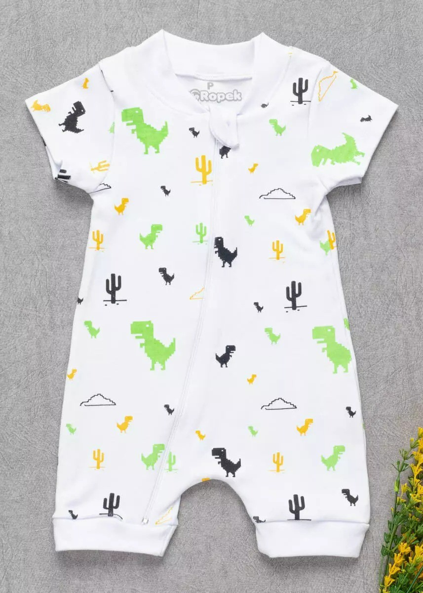 Macacão Bebê Verão Suedine, material super macio e fresquinho proporcionando muito conforto para seu bebê. Com zíper frontal e proteção interna para não ter contato com o zíper na pele do bebê.