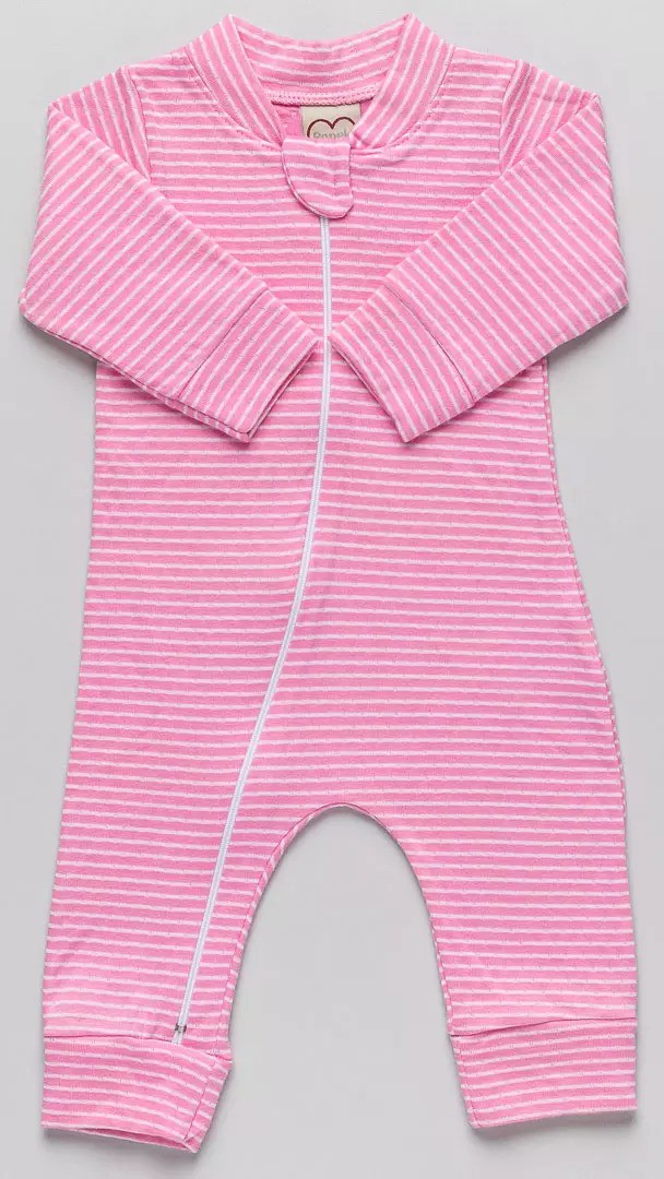 Com zíper frontal e proteção interna para não ter contato com a pele do bebê.