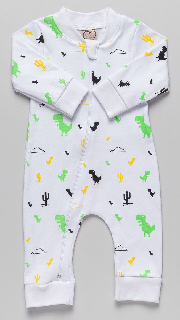 Com zíper frontal e proteção interna para não ter contato com a pele do bebê.