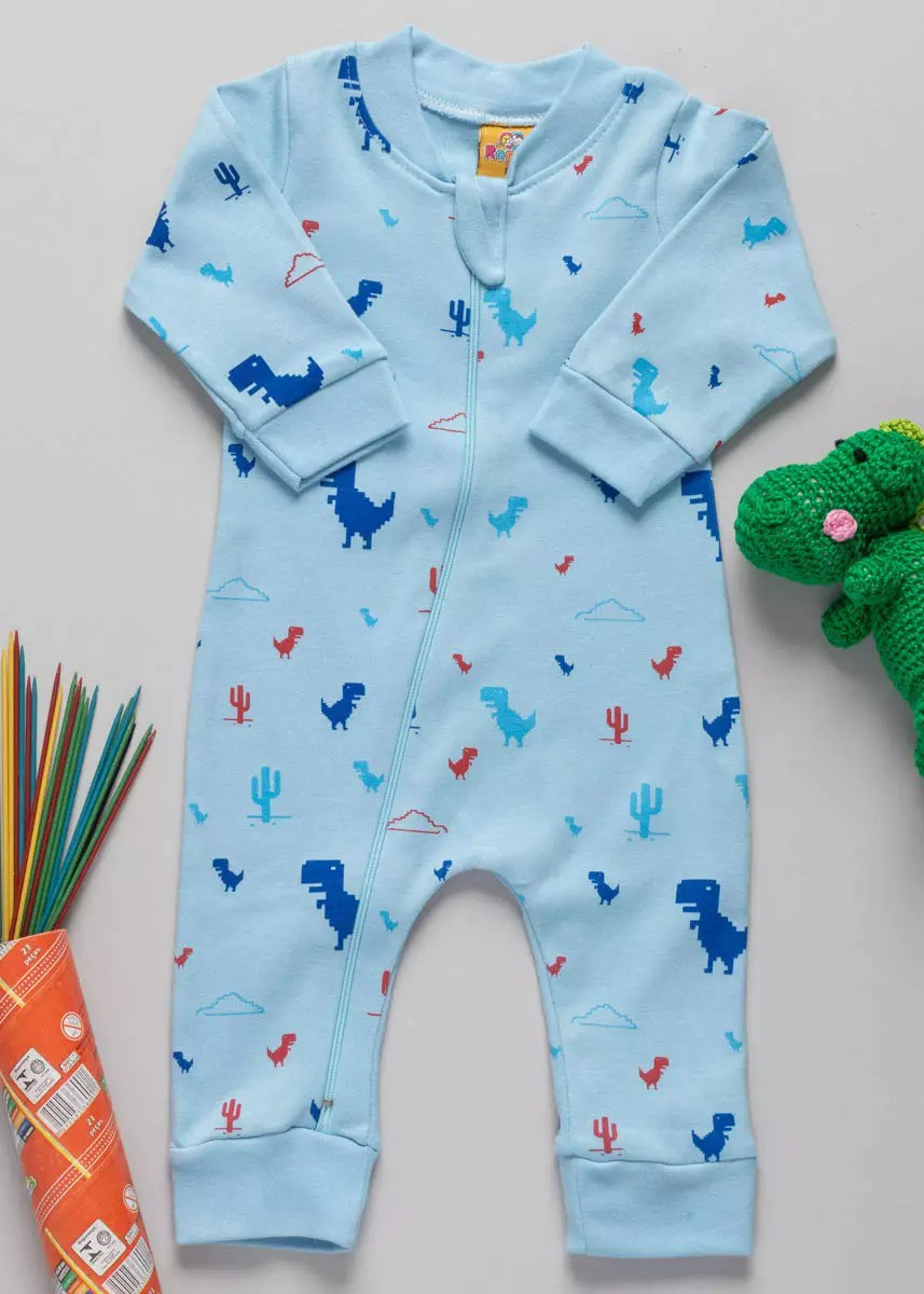 Com zíper frontal e proteção interna para não ter contato com a pele do bebê.